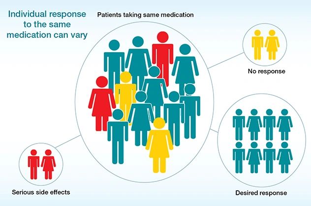 Pharmacogenomic testing helps clinicians predict which medications will most likely produce desired responses in different patients.
